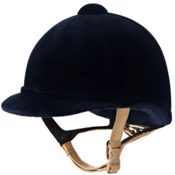 With a soft yet durable tan harness, satin lining and lush headband, this helmet combines low-profile styling with the most recent safety and protection.